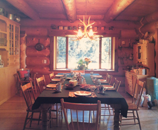 | ポスト&ビームとは、他のログハウスと異なり、日本の在来構法と同じ軸組み構造で、その柱と梁にログを使用したものです。ログハウスでありながら和風の雰囲気をもったものが建てやすいのもこの構法の特徴です。壁の部分は、漆喰をはじめとする左官仕上げや、板張り、石張り、サイディング張り等でさまざまな雰囲気の家をデザインできます。 |